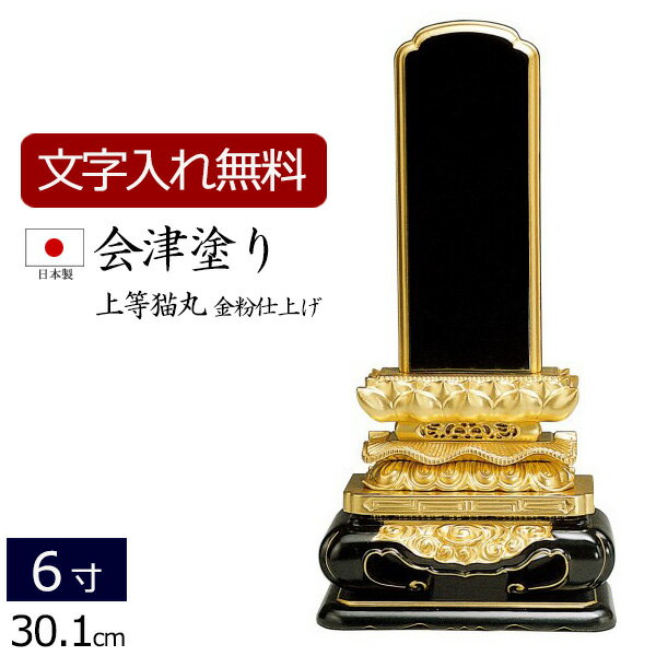 【日本製】【一霊分 文字代無料】会津位牌 上等猫丸 本金蒔粉(面粉)6.0寸:総高30.4cm【配送区分:h】宅配便のみ・一部地域除き||送料無料||